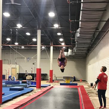 Tumbling is a form of gymnastics that doesn't require using all the equipment. Instead, skills are primarily learned on the floor and trampolines and include rolls, cartwheels, flips, handsprings, tucks and handstands. Tumbling classes are a great option for cheerleaders or dancers looking to grow their skills. Classes are offered at the beginner, intermediate and advanced levels.